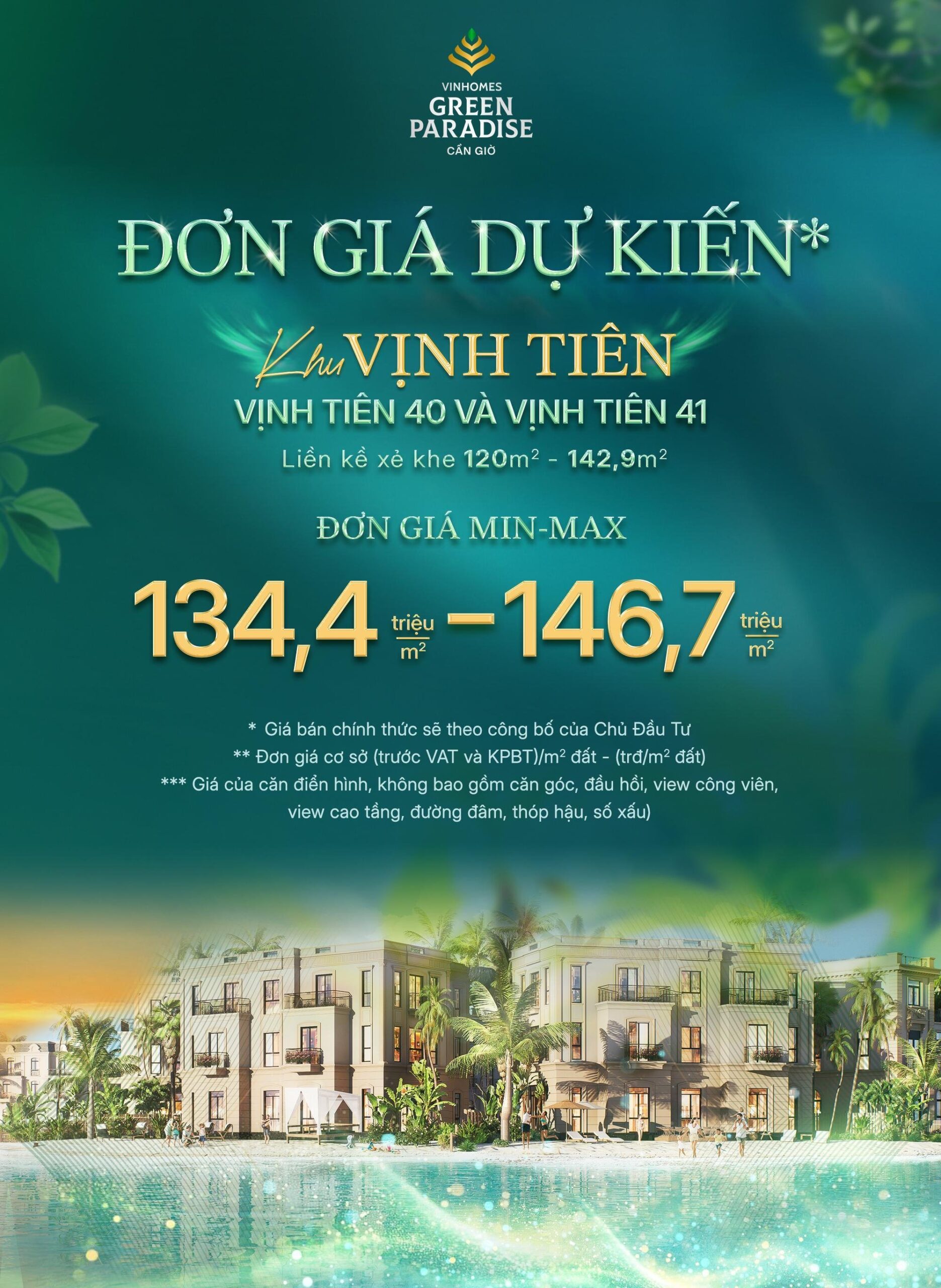 → Giá nhà phố Vịnh Tiên: từ 134 triệu đồng/m2 (~ 12,9 tỷ đồng/căn)